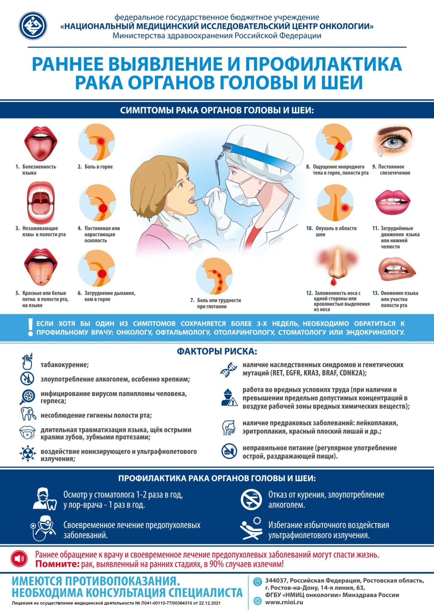 В рамках Недели будет проводиться обследование населения мультидисциплинарной командой специалистов в составе онколога, оториноларинголога, стоматолога или челюстно-лицевого хирурга.